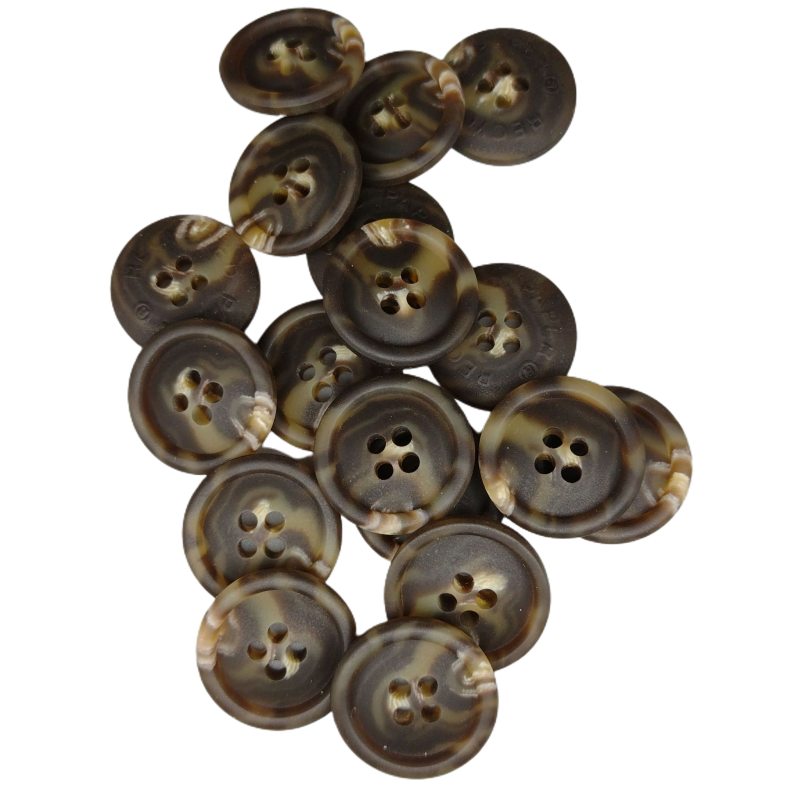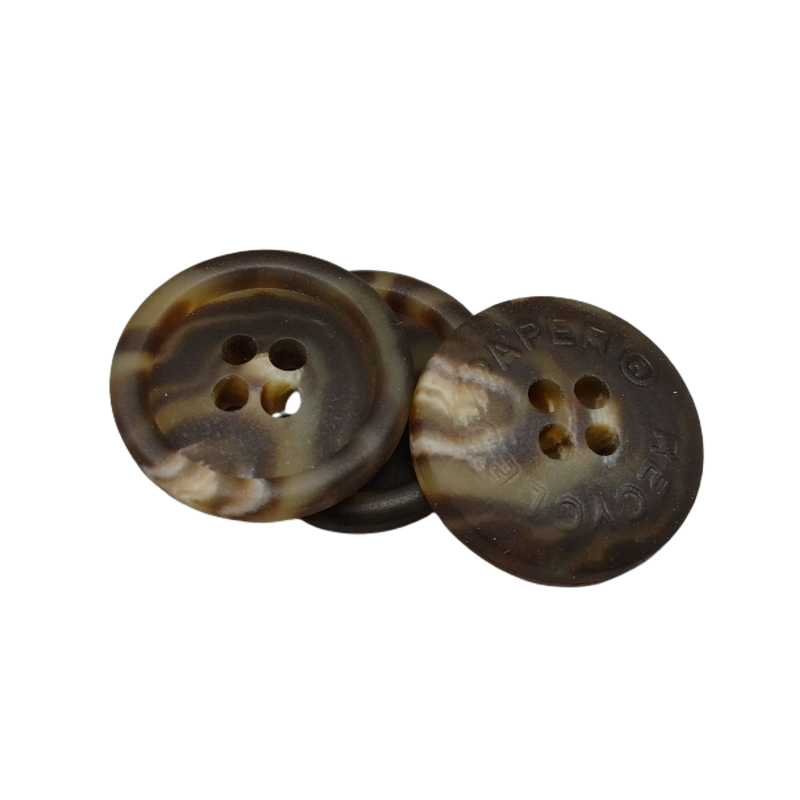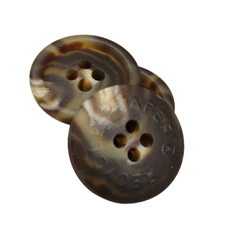 I bottoni di carta sono realizzati con il 45-55% di carta riciclata, il resto è in poliestere riciclato.