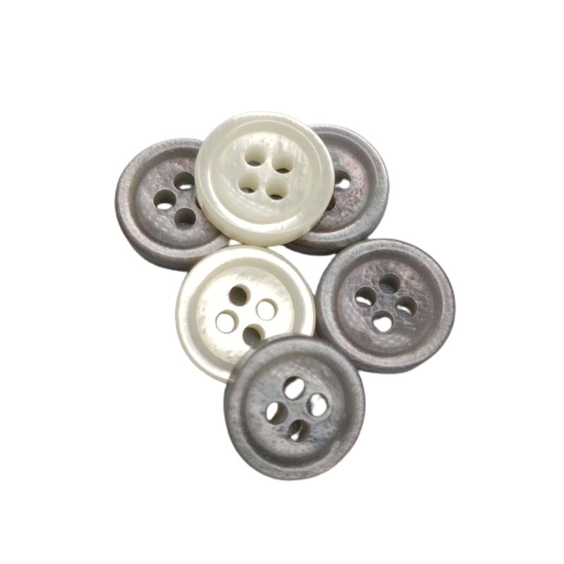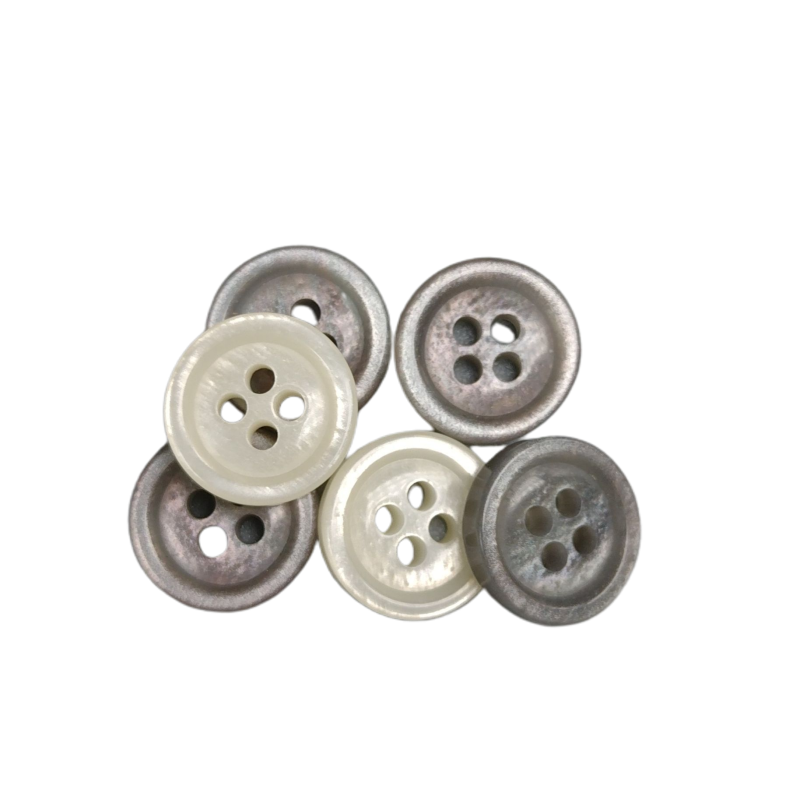 Questi bottoni contengono il 90-95% di resina di poliestere riciclata e il 40% di questa contiene prodotti di origine biologica.