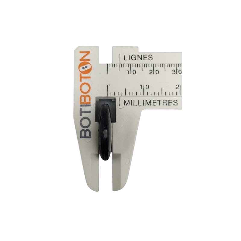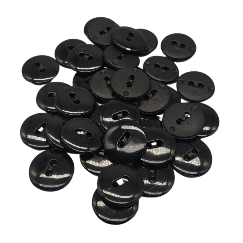 - Bottoni rotondi neri, finitura lucida.
