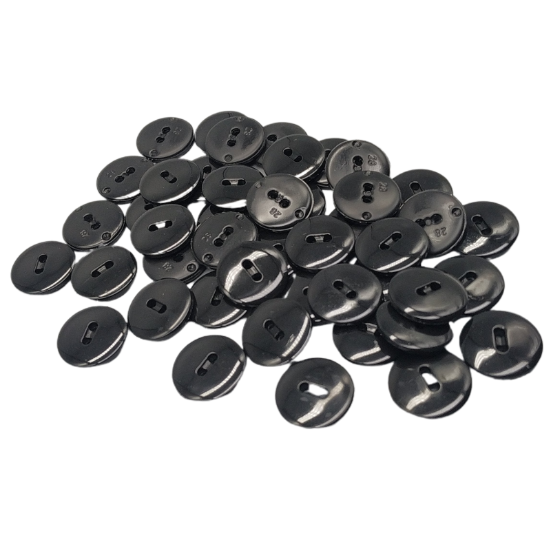 - Bottoni rotondi neri, finitura lucida.