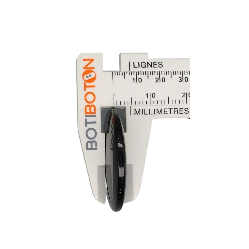 - Bottoni rotondi neri, finitura lucida.