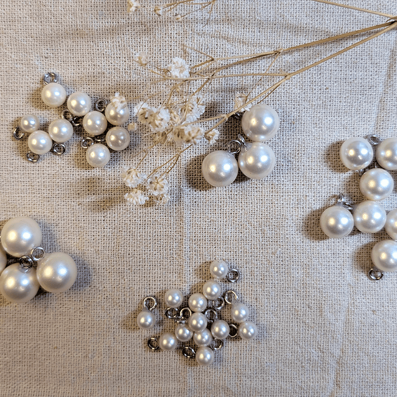 - Bottoni in finta perla a forma di palla con anello metallico per cucire. (Non arrugginiscono)