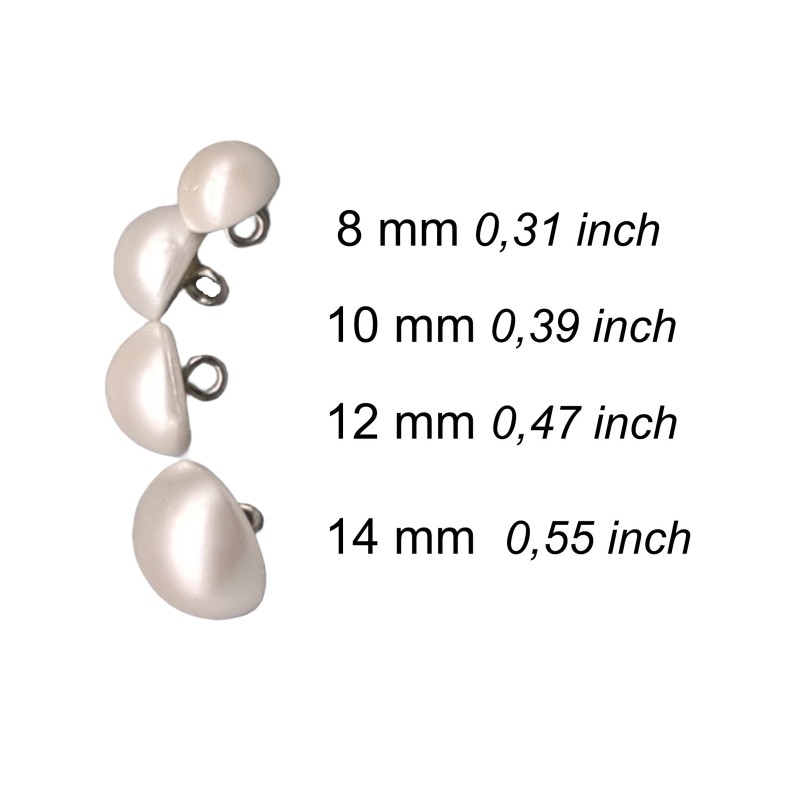 Bottoni in finta perla a forma di mezza sfera con anello metallico per cucire. (Non arrugginiscono)