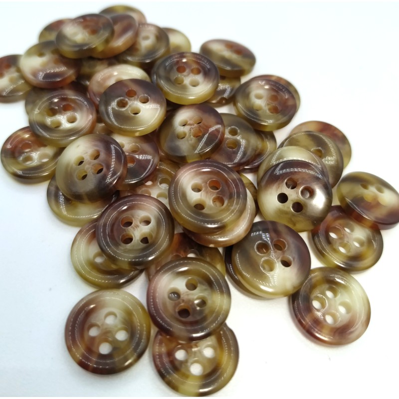 Bottoni marroni con sfumature grezze e marroni. Una gamma di colori che si abbina bene a una varietà di tonalità di marrone, grigio e nero.