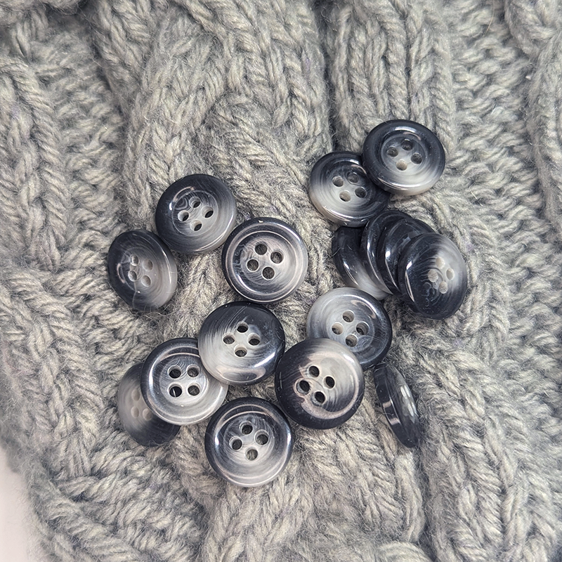 Bottoni con motivi grigi e neri. Una gamma di colori che si abbina bene a una varietà di toni di grigio e stampe nere.