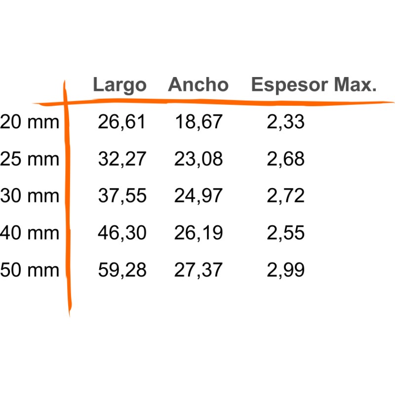 Tallas: 20, 25, 30, 40 y 50 mm