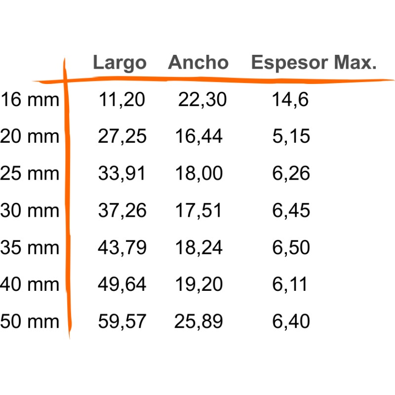 Tallas : 16, 20, 25, 30, 35, 40 och 50 mm