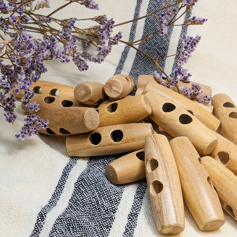 Los botones de madera de trenca están fabricadas con Madera de Olivo. Es un producto 100% Biodegradable y 100% Ecológico.